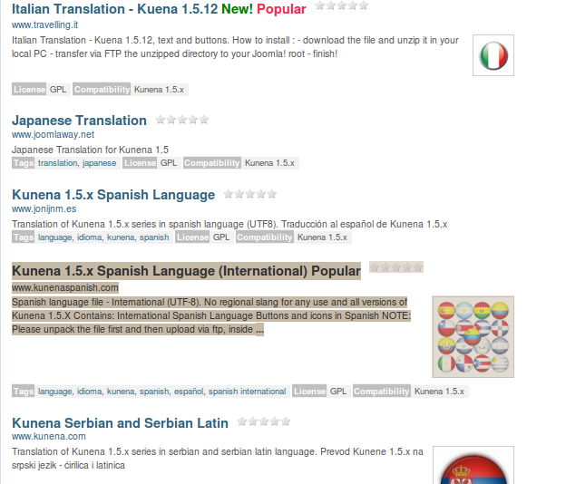 - Premem en el idioma que volem instal·lar, com que el meu idioma no hi es, per continuar amb aquesta demostració faré clic en "Kunena 1.5.x Spanish Language (International)":