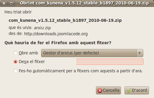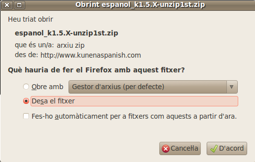 Desem el fitxer, anem al lloc on tenim el fitxer desat i veurem que el nom de l'artxiu es algo aixi com "espanol_k1.5.X-unzip1st.zip", ve tots els arxius que digen "unzip" tenim que descomprimir-los havans de pujar-los.