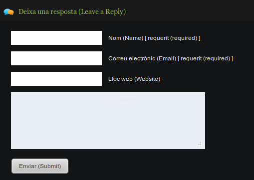 Per editar aquests textos tan sols hem de editar l'arxiu comments.php que es troba en /var/www/materra/wp-content/themes/NOM_DEL_TEME_INSTAL·LAT