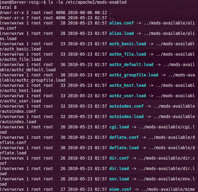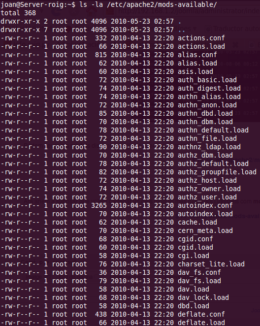 Ara anem a suposar que volem carregar un dels mòduls més habituals i utilitzats com mod_rewrite per les URL netes: